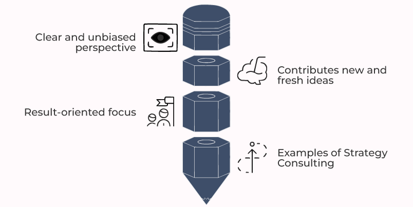 For instance, a business is undergoing a merger, buy-out, or acquisition. They will seek the advice of a strategy consultant to identify the overlapping roles and areas that require consolidation. They further offer general guidance as an independent and unbiased third party.